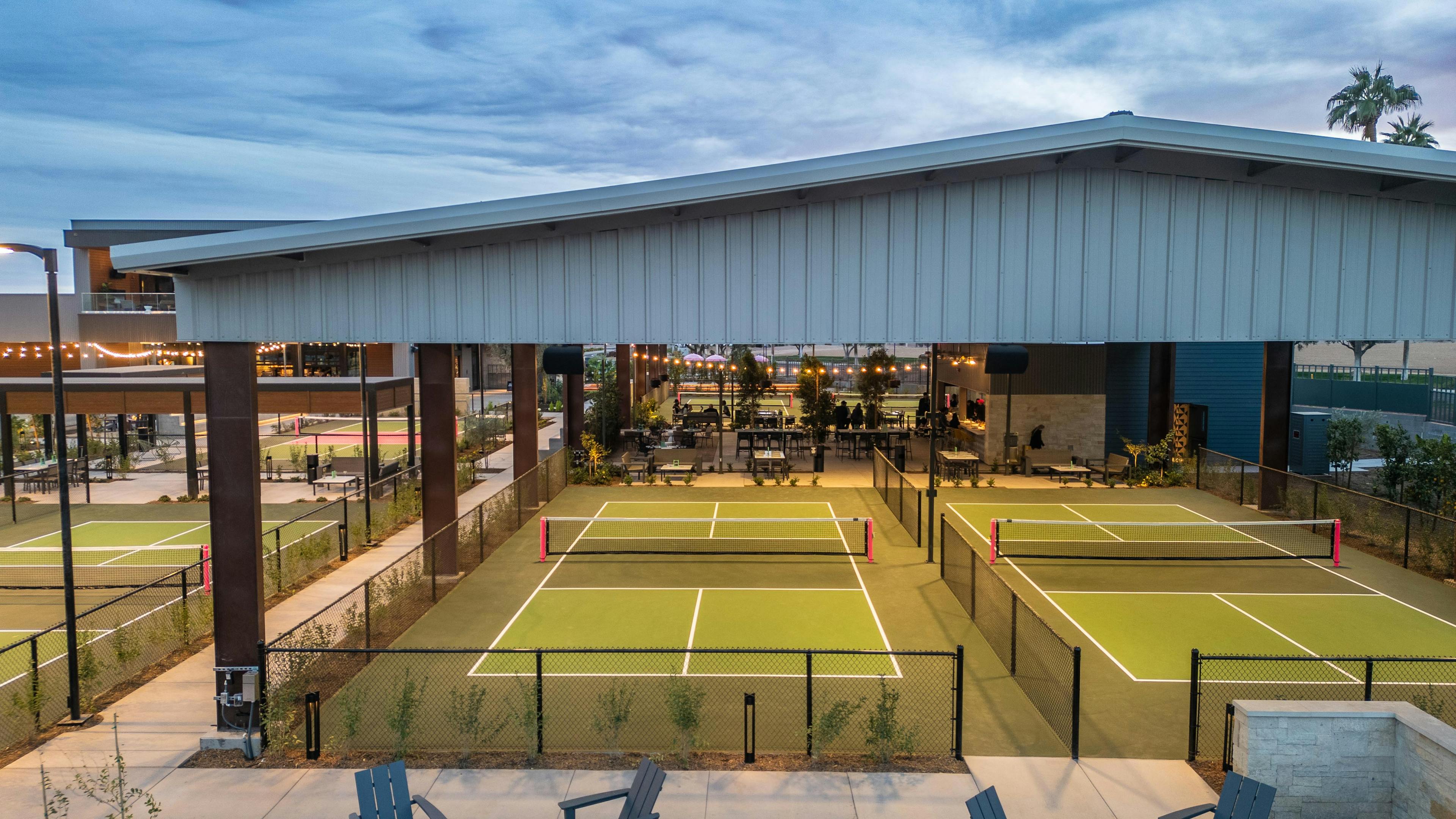 Our event spaces are designed for a mix of games, socializing and relaxation. From bachelorette parties to corporate buyouts, we got you covered! Impress your friends or staff with a variety of activities from golf simulators to bocce ball. And of course, challenge them to a friendly game of pickleball! Throw a surprise party in any of our private spaces from the Ace Room seating up to 22 guests to "The Ball-Room" serving up to 130 guests! Want to take over the entire space? Not a challenge! Party of 12? Set up in one of our courtside cabanas!
